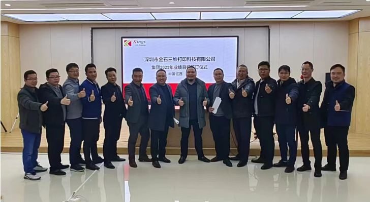 大会从市场开发、产品研发、业务销售、团队建设等多维度对各子公司及事业部的发展规划确立了清晰的目标,并就具体的落地行动方案进行了精细布局。江总、邱总、陈总代表集团签订了2023年业绩目标计划书。